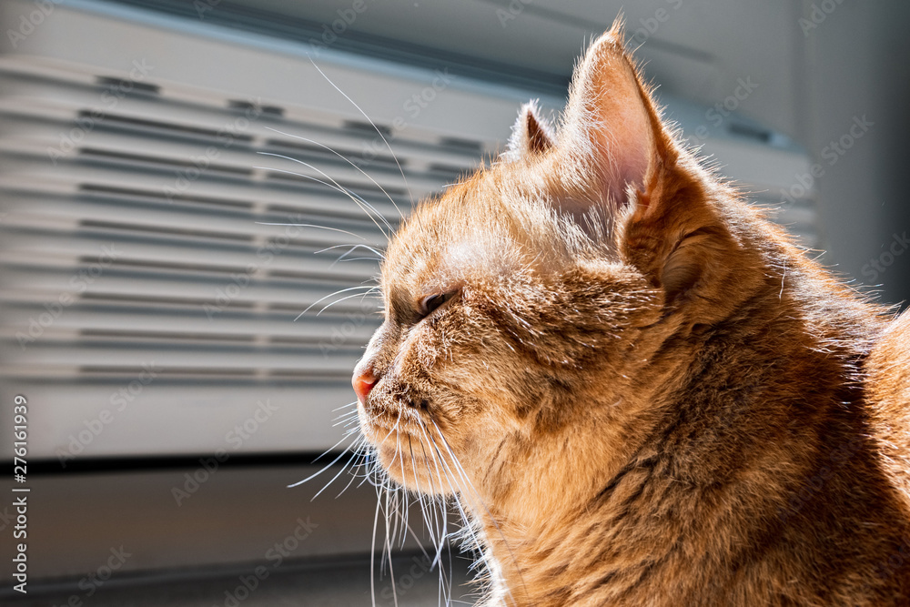 Profile View Of Half Persian Orange Cat With Closed Eyes Sitting In The Sun Stock Photo Adobe Stock