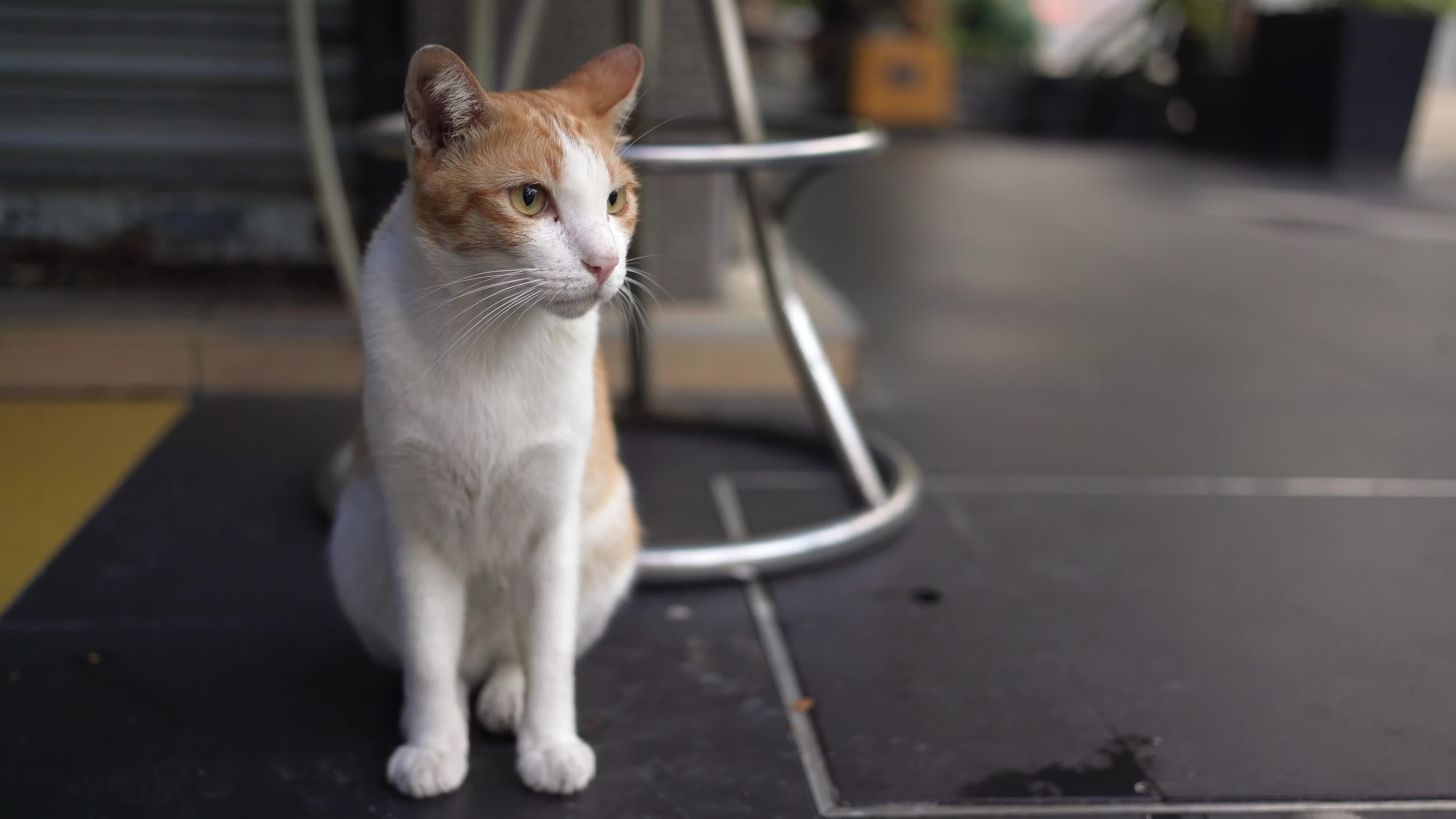 If you watch closely you will likely. But cats will often sit. Close up of a street cat with golden eyes sitting on the stone floor.